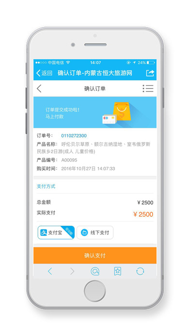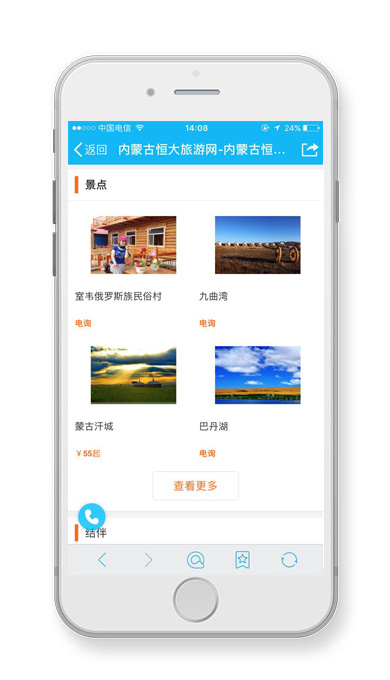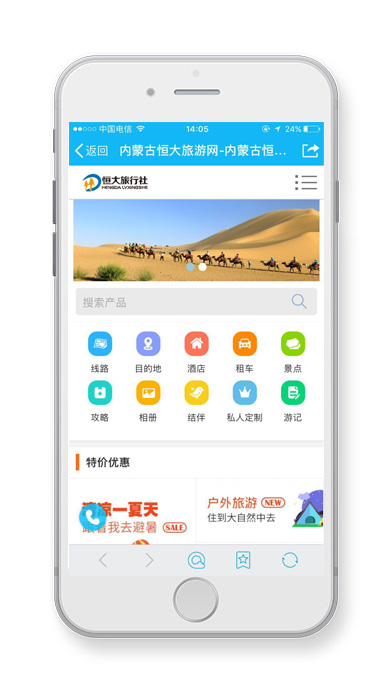 內(nèi)蒙古恒大旅游公司官方微網(wǎng)站,用戶(hù)可以直接在微信平臺(tái)預(yù)定各類(lèi)旅游路線(xiàn)、景點(diǎn)、酒店、租車(chē)。并且有呼倫貝爾、呼和浩特、赤峰、錫林郭勒、阿拉善等多個(gè)站點(diǎn)支持。用戶(hù)可以直接在微信平臺(tái)付款購(gòu)買(mǎi)該網(wǎng)站的任何旅游產(chǎn)品,支持微信支付、支付寶支付等多種主流支付方式,呼搜網(wǎng)從策劃到開(kāi)發(fā)上線(xiàn)全程提供服務(wù)。