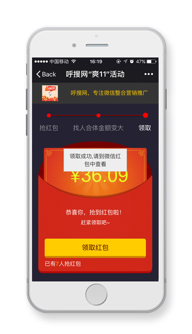 搶到紅包后,需要找一定數(shù)量的好友幫你合體,合體次數(shù)越多,紅包金額越高,當(dāng)合體到完成進(jìn)度后,點(diǎn)擊領(lǐng)取紅包
