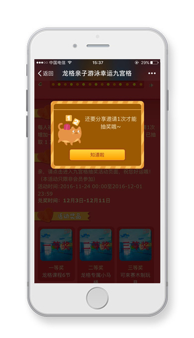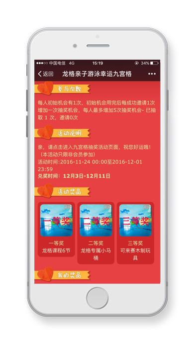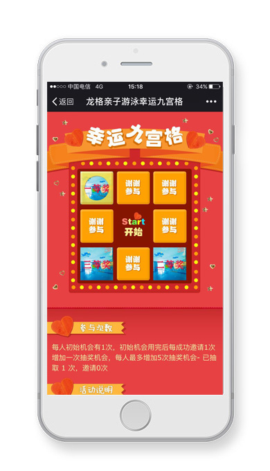 龍格親子游泳呼和浩特中心微信平臺舉辦的活動,幸運九宮格。呼搜網(wǎng)為龍格親子游泳微信公眾號提供技術(shù)支持和平臺搭建。