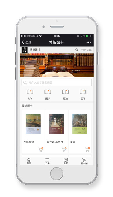 博智圖書微網(wǎng)站平臺,用戶可以直接在微信平臺租借各種圖書并且付款,支持微信支付等方式,呼搜網(wǎng)從策劃到開發(fā)上線全程提供服務(wù)。