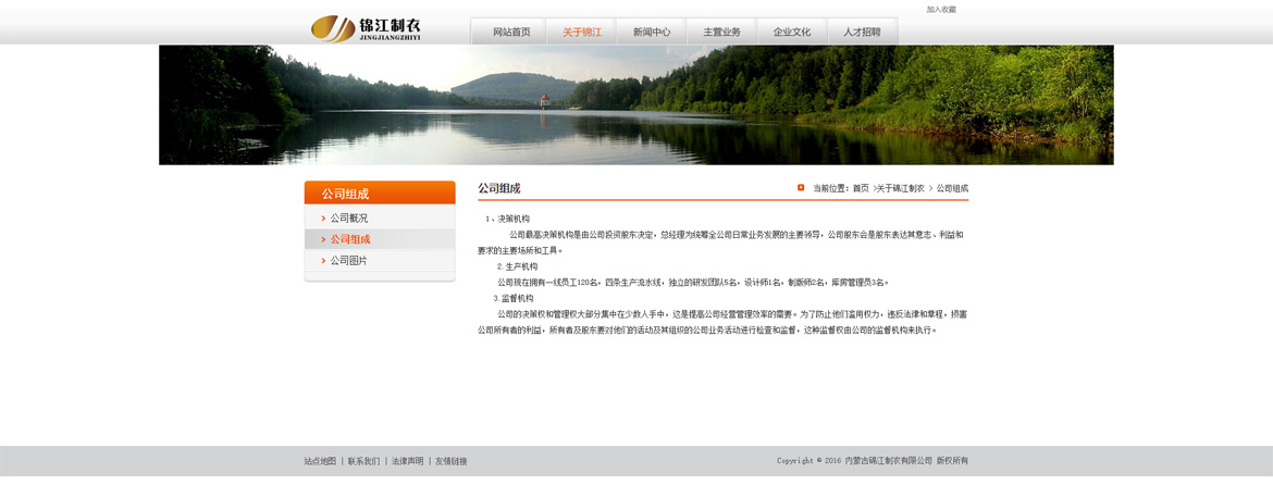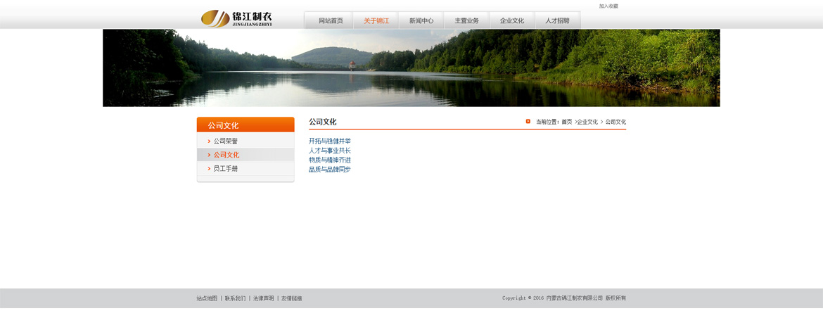 內(nèi)蒙古錦江制衣有限公司是集產(chǎn)品研發(fā)、設(shè)計(jì)、制作、銷售為一體的大型服裝生產(chǎn)基地,公司本著顧客的期望永遠(yuǎn)都是錦江人追尋的方向的理念為本。