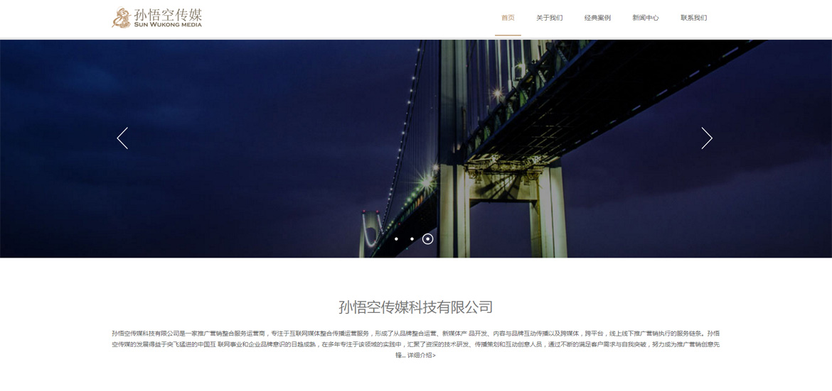 孫悟空傳媒科技有限公司是一家推廣營銷整合服務(wù)運營商,專注于互聯(lián)網(wǎng)媒體整合傳播運營服務(wù),形成了從品牌整合運營、新媒體產(chǎn) 品開發(fā)、內(nèi)容與品牌互動傳播以及跨媒體,跨平臺,線上線下推廣營銷執(zhí)行的服務(wù)鏈條。