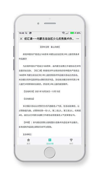 為慶祝中國共產(chǎn)黨成立100周年,由內(nèi)蒙古幼教工作者協(xié)會藝術(shù)專業(yè)委員會主辦、【優(yōu)匯課】網(wǎng)絡(luò)培訓(xùn)平臺承辦的慶祝中國共產(chǎn)黨成立100周年 內(nèi)蒙古自治區(qū)青少年兒童優(yōu)秀美術(shù)作品展示活動(dòng)正式啟動(dòng)。本次展示的作品是參加大賽的獲獎(jiǎng)作品,活動(dòng)充分展示新時(shí)代青少年兒童藝術(shù)修養(yǎng)和綜合素質(zhì),抒發(fā)青少年兒童的愛國情懷。