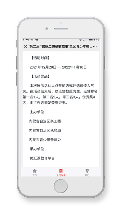 為慶祝中國(guó)共產(chǎn)黨成立100周年,由內(nèi)蒙古幼教工作者協(xié)會(huì)藝術(shù)專(zhuān)業(yè)委員會(huì)主辦、【優(yōu)匯課】網(wǎng)絡(luò)培訓(xùn)平臺(tái)承辦的第二屆 “我身邊的稅收故事”全區(qū)青少年微視頻征集大賽線上展示活動(dòng)正式啟動(dòng)。本次展示的作品是參加大賽的獲獎(jiǎng)作品,活動(dòng)充分展示新時(shí)代青少年兒童藝術(shù)修養(yǎng)和綜合素質(zhì),抒發(fā)青少年兒童的愛(ài)國(guó)情懷。