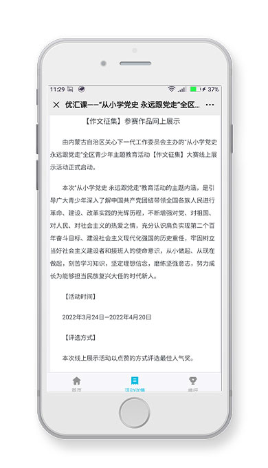 2022年初由內(nèi)蒙古自治區(qū)關(guān)心下一代工作委員會(huì)主辦的“從小學(xué)黨史 永遠(yuǎn)跟黨走”全區(qū)青少年主題教育活動(dòng)【作文征集】大賽線上展示活動(dòng)正式啟動(dòng)。